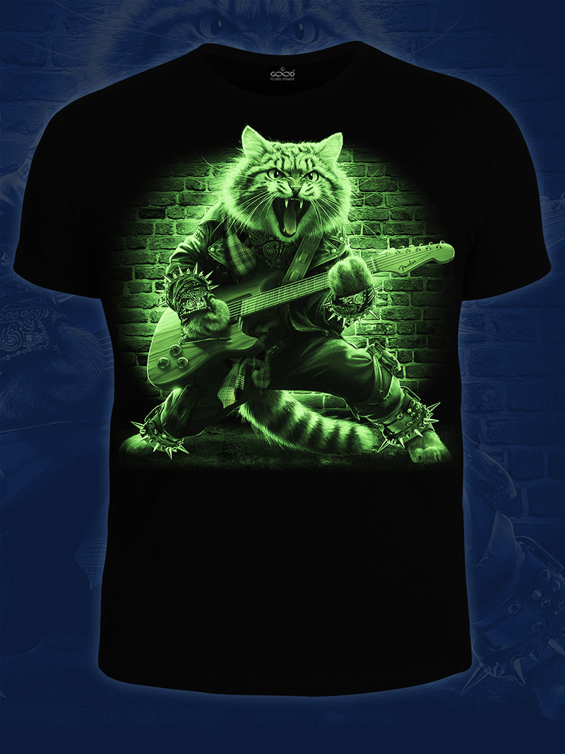 חולצה עם שרוול קצר ייחודית לגברים, בד – כותנה איכותית שמוסיף סטייל ומלא צבע ללילה עם הדפס משי עשוי מחומר שזוהר בחושך לאחר ספיגה של אור או זוהר באולטרה סגול.